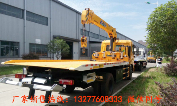 隨車吊清障車又叫平板帶吊清障車,就是在一拖二清障車的基礎上加裝了吊機組成整車,它不僅具備了一拖二清障車的所有功能,廣泛應用于城管、高速公路、汽車修理廠、汽車4S店、專業(yè)道路施救公司等單位,是清障、救援道路違章或故障車輛的理想設備。另外還可使用吊機救援一般平板清障車不能靠近或救援的事故車輛,還可利用吊機代替人工清理事故車輛隨車攜帶的貨物,比較適合專業(yè)道路施救隊。