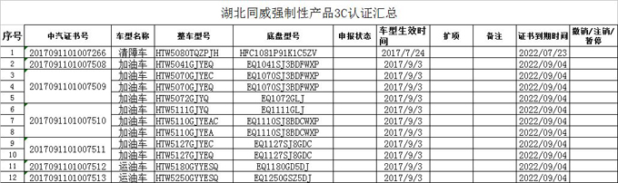 湖北同威強(qiáng)制性產(chǎn)品3C認(rèn)證匯總,截至2017年9月15日。