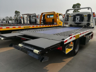 該車平板長度為5.3米(含液壓伸縮加長部份),寬2.22米,3P2A折疊沖壓式平板,帶100CM液壓伸縮式可加長平板。該車采用國標優(yōu)質(zhì)碳鋼花紋板制作,平板由多塊壓制預壓板組成,10根加強型槽鋼橫梁固定,既減輕了整車重量,又增加了托舉和裝載能力。 大承載質(zhì)量為2.5噸,平板 小傾斜角為8度,托舉系統(tǒng)額定托舉質(zhì)量為1.2噸,采用1個4噸液壓絞盤,加粗鋼絲繩20米,一個工具箱,一個洗手箱,該車配備6個綁帶,鏈鉤一條,可選裝LED長排警燈。
