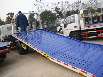 該車平板長(zhǎng)度為5.3米(含液壓伸縮加長(zhǎng)部份),寬2.22米,3P2A折疊沖壓式平板,帶100CM液壓伸縮式可加長(zhǎng)平板。該車采用國(guó)標(biāo)優(yōu)質(zhì)碳鋼花紋板制作,平板由多塊壓制預(yù)壓板組成,10根加強(qiáng)型槽鋼橫梁固定,既減輕了整車重量,又增加了托舉和裝載能力。 大承載質(zhì)量為2.5噸,平板 小傾斜角為8度,托舉系統(tǒng)額定托舉質(zhì)量為1.2噸,采用1個(gè)4噸液壓絞盤,加粗鋼絲繩20米,一個(gè)工具箱,一個(gè)洗手箱,該車配備6個(gè)綁帶,鏈鉤一條,可選裝LED長(zhǎng)排警燈。