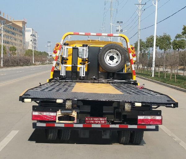 (2)新款藍(lán)牌清障車:進(jìn)口件,3P1B式?jīng)_壓式平板,板上開孔,液壓翻板,常規(guī)托舉裝置,平板可承載3噸以內(nèi)的重物,此車采用雙側(cè)聯(lián)動(dòng)操作裝置,鐵質(zhì)擋泥板,配備1個(gè)40KN液壓絞盤(25米鋼絲繩),新款4根捆綁帶,鏈鉤1條, 2個(gè)小車,一個(gè)洗手箱,一個(gè)工具箱,不帶長(zhǎng)排工程警燈(LED),其余標(biāo)配。保證整車外型尺寸、外形與公告一致。